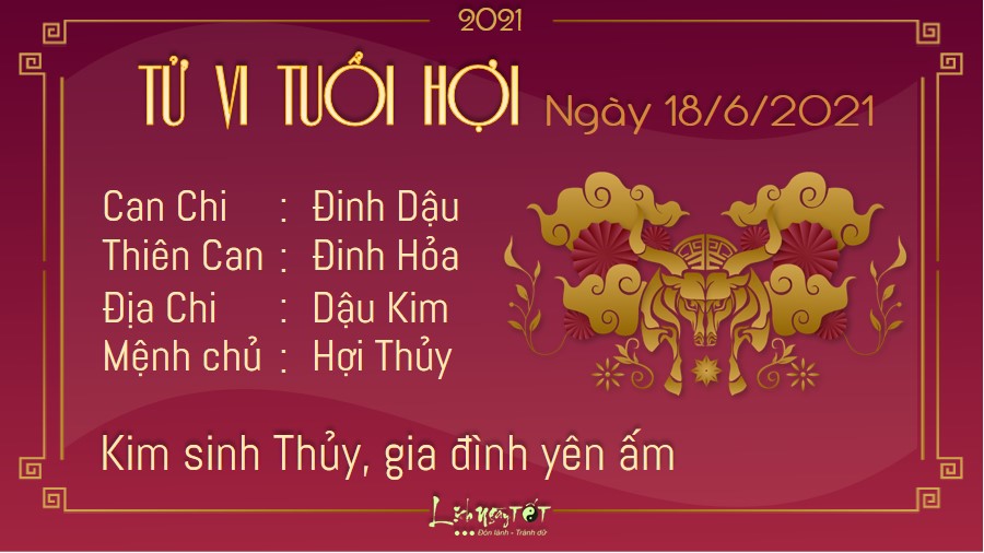 Kim sinh Thủy cho thấy mối quan hệ giữa người tuổi Hợi và nửa kia rất yên ấm. Bạn luôn dành cho nửa kia sự tôn trọng và luôn thảo luận mọi chuyện với người ấy, bất kể việc lớn hay việc nhỏ, nhờ thế mà vợ chồng luôn đồng lòng trong mọi công việc. Nếu còn độc thân, nhân duyên khác giới của bạn đang khá vượng. Bản mệnh nên nhiệt tình hơn trong các cuộc trò chuyện với mọi người, bởi rất có thể nhờ đó, bạn sẽ tìm ra được người phù hợp với mình. Trên phương diện sự nghiệp, Chính Quan cho thấy bạn có cơ hội được cất nhắc lên một vị trí phù hợp hơn với năng lực của mình. Đừng ngại khó khăn và vất vả, năng lực của bạn vẫn còn có thể giúp bạn vươn xa hơn thế nữa.