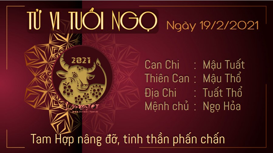 Tam Hợp giúp người tuổi Ngọ luôn duy trì được sự nhiệt tình và hăng hái trong công việc. Mới ra Tết nhưng bản mệnh thường bắt tay vào làm việc ngay mà không hề chần chừ, do dự, dù đó là công việc khó khăn đi chăng nữa. Tuy nhiên, khi đứng trước những quyết định quan trọng, bạn cần phải suy tính một cách kỹ càng, cẩn trọng, không nên quá nóng vội, dễ khiến bản thân mắc lỗi không đáng có, thậm chí gây ra hối tiếc sau này. Hỏa sinh Thổ, mối quan hệ giữa con giáp này và gia đình vô cùng hòa hợp. Đôi lứa yêu nhau thì đang ở trong quá trình yêu đương nồng nhiệt, thậm chí tính đến những chuyện xa xôi hơn. Người độc thân có thể thu hút ánh mắt của nhiều người khác giới.
