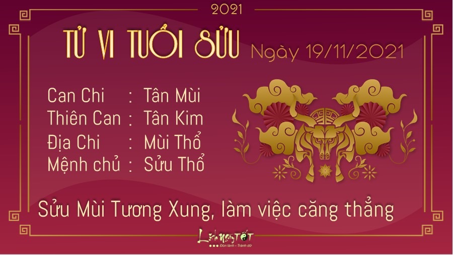 Tương Xung tác động, người tuổi Sửu luôn cố gắng hoàn thành thật tốt nhiệm vụ của mình, nhưng cũng chính vì thế mà bạn trở nên cầu toàn, khó tính, thường xuyên chê bôi, trách móc người khác, khiến bầu không khí tập thể trở nên căng thẳng. Bạn đang đặt cái tôi cá nhân lên quá cao đấy. Có thể những suy nghĩ của bạn chưa thực sự chính xác đâu. Hãy thử lắng nghe ý kiến của người khác hoặc đặt mình vào vị trí của đối phương xem sao, bạn sẽ có cách nhìn nhận khác về vấn đề đấy. Hôm nay trực Thành là ngày tốt cho xuất hành, khai trương, giá thú nhưng tránh kiện tụng, tranh chấp. Vì thế, bạn nên sắp xếp công việc để thực hiện cho phù hợp, có như vậy thì quá trình thực hiện mới gặp nhiều may mắn.