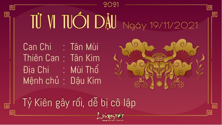 Tỷ Kiên đem tới những ảnh hưởng không mấy tích cực cho sự nghiệp của người tuổi Dậu. Bạn có thể là người tài giỏi và mạnh mẽ đó, nhưng bạn lại không được lòng mọi người xung quanh, thậm chí bạn còn tự cô lập bản thân. Đừng sống mãi trong thế giới của riêng mình, bởi bạn không thể làm tất cả mọi việc trên đời này một mình được đâu. Hãy cởi mở với mọi người hơn để xây dựng các mối quan hệ tốt đẹp, đôi bên cùng chung tay giải quyết khó khăn. Nếu có việc cần phải đi xa trong ngày hôm nay, con giáp này nên xuất phát vào giờ hoàng đạo và lựa chọn những hướng đi tốt để công việc thêm phần thuận lợi. Hôm nay Hỷ thần và Tài Thần đều xuất hiện ở hướng Tây Nam.