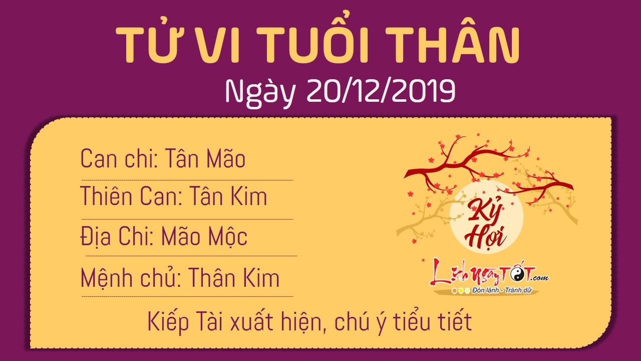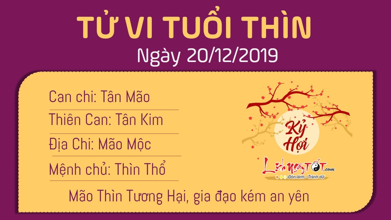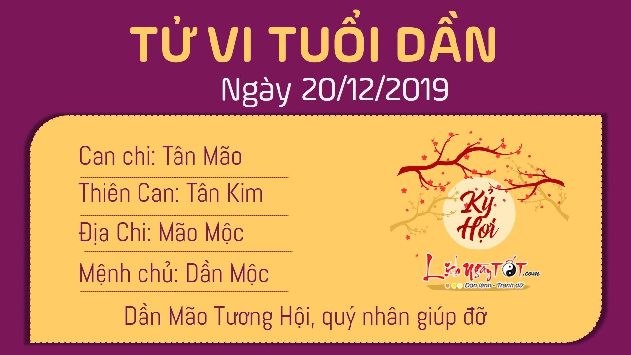 Tử vi ngày 20/12/2019 tức ngày 25/11 theo lịch âm năm Kỷ Hợi của 12 con giáp: