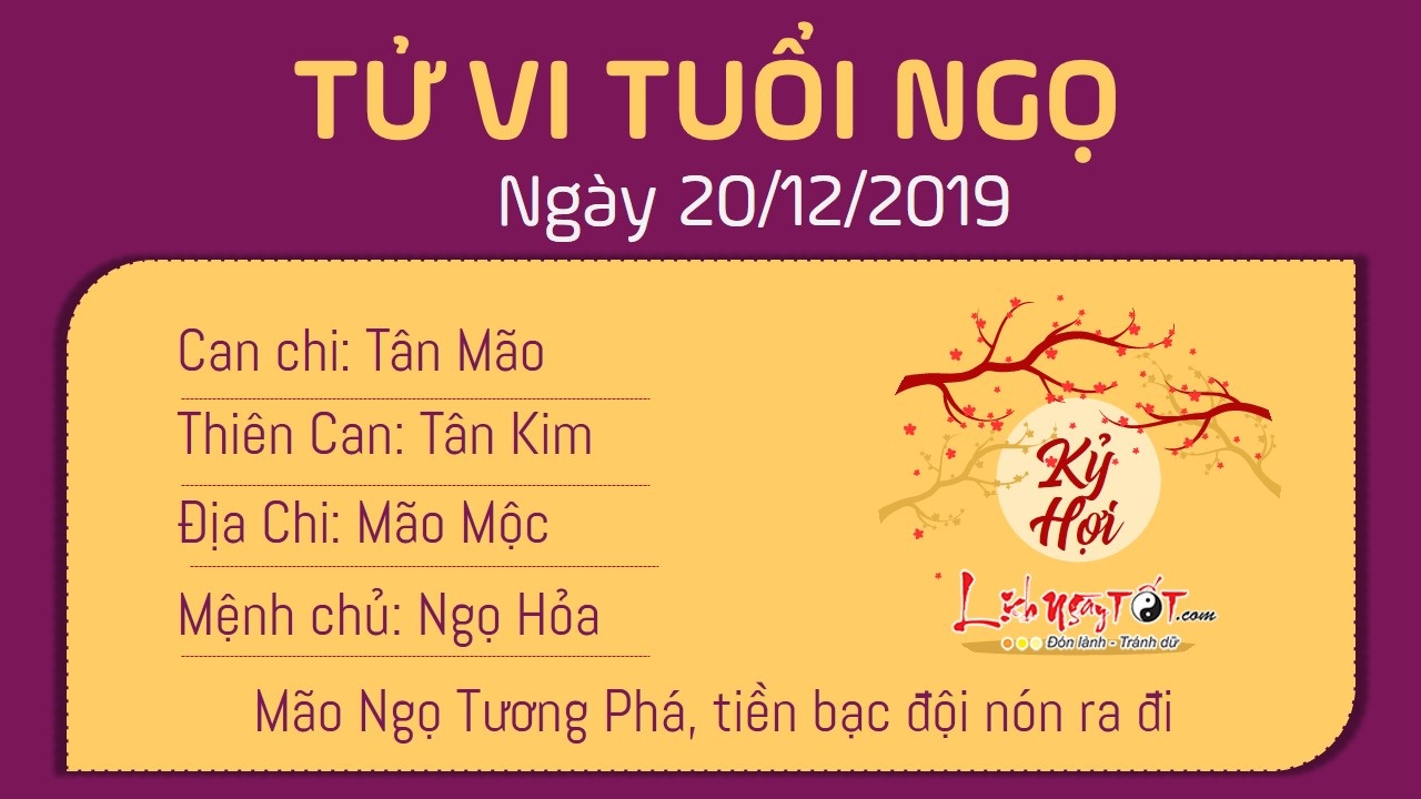 Cục diện Mão Ngọ Tương Phá dự báo người tuổi Ngọ có điềm phá tài trong ngày hôm nay, tiền bạc trong nhà có nguy cơ đội nón ra đi. Nếu có kế hoạch đầu tư mạo hiểm, tốt nhất con giáp này nên tạm dừng để xem xét kĩ càng hơn về mức độ khả thi và thành công trong tương lai, chớ mạo hiểm mà khiến cho đồng tiền mồ hôi nước mắt của mình một đi không trở lại. Khi hợp tác làm ăn, bạn nên chọn người tin cậy được. Thiên Quan xuất hiện, sự năng động nhiệt tình của bạn là điểm cộng rất lớn đối với khả năng làm việc. Tuy tài năng nhưng bạn lại bị động, không chịu tìm tòi sáng tạo nên rất dễ bị tụt lùi giữa thời buổi mọi thứ phát triển nhanh như vũ bão này.