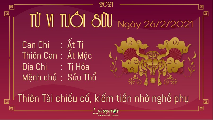 26/02/2021 13:00Tử vi thứ 6 ngày 26/02/2021 của 12 con giáp: Sửu kiếm tiền, Tị nông nổi