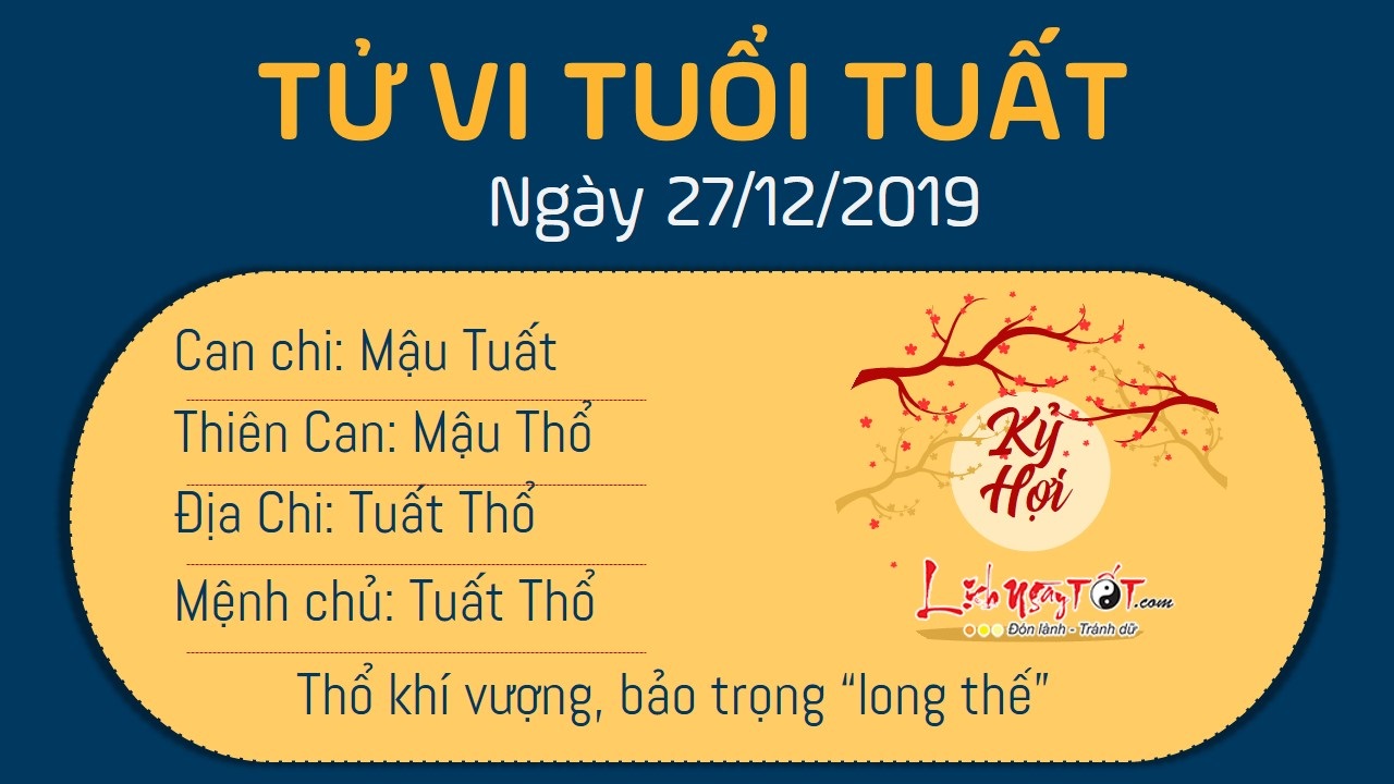 Tỷ Kiên xuất hiện, sự nghiệp thành hay bại hoàn toàn nằm trong bàn tay người tuổi Tuất. Bản mệnh có thể may mắn được quý nhân dẫn đường giúp sự nghiệp tăng tiến nhưng nếu bản thân bạn không đủ cố gắng và nỗ lực thì bạn cũng khó có thể đạt được mục tiêu. Thành công được quyết định bởi rất nhiều yếu tố, thiên thời, địa lợi mà nhân chẳng hòa thì cũng khó mà thắng được. Chuyện tình cảm ngày hôm nay vẫn tiến triển tiển tốt đẹp nên người tuổi Tuất có thể chuyên tâm vào công việc mà không phải lo âu điều gì. Tuy nhiên, trong ngày Thổ khí vượng, người tuổi Tuất nên chú ý hơn về sức khỏe, đặc biệt là vấn đề tiêu hóa.