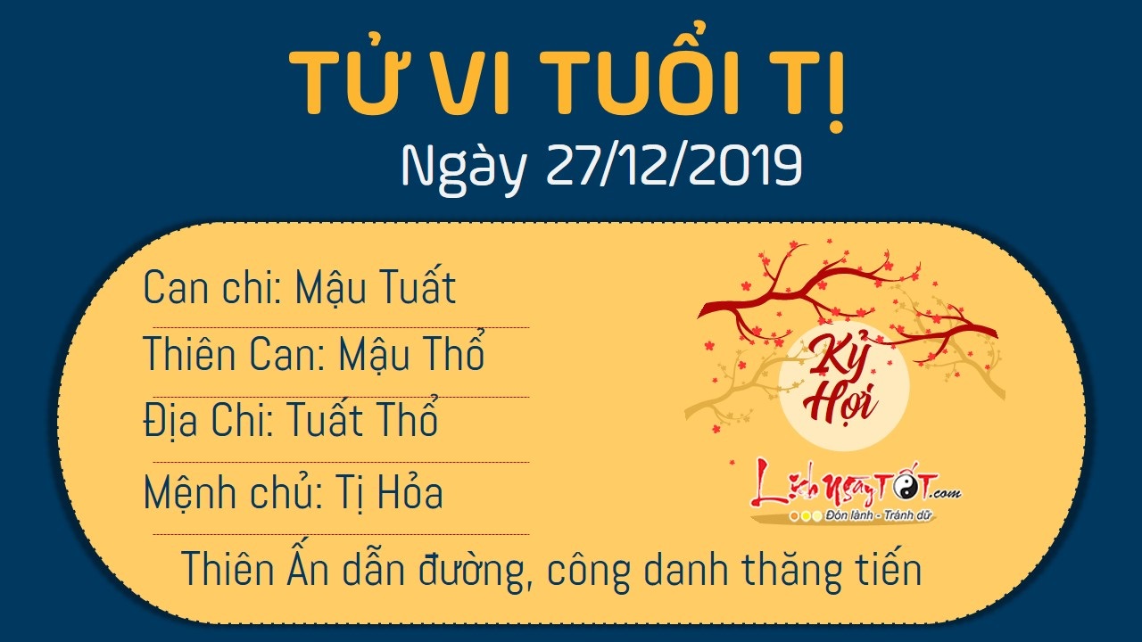 Tuổi Tị được Thiên Ấn dẫn đường, công danh tăng tiến không ngừng, đem lại nhiều niềm vui cho bản mệnh. Bạn tự hào vì những gì mình đã làm được và tâm niệm rằng phải cố gắng không ngừng nghỉ, sáng tạo và chủ động nhiều hơn nữa trong công việc để giành lấy thêm nhiều cơ hội phát triển sự nghiệp cho mình. Tuy công việc thuận lợi nhưng trong ngày Hỏa sinh suất cho Thổ, vận trình tình cảm của người tuổi Tị không mấy tốt đẹp. Mâu thuẫn bùng nổ có thể bùng nổ bất cứ lúc nào khiến hai bên không thể ngờ. Có lẽ những điều khó chịu đã được kìm nén quá lâu đã quá giới hạn chịu đựng của cả hai. Sự khác biệt phía tính cách chính là một bức tường kiên cố và vững chắc chắn ngang hai con tim.