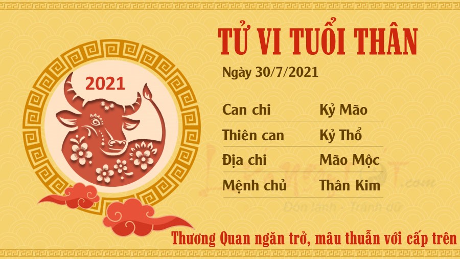Thương Quan ngăn trở, người tuổi Thân dễ gặp phải vướng mắc với người làm lãnh đạo. Đừng để tính cách nóng nảy, bốc đồng là nguyên nhân khiến cấp trên phản cảm với bạn, gây cản trở cho sự phát triển trong tương lai. Người gặp phải khó khăn trong công việc cũng như trong cuộc sống chớ nên bỏ dở giữa chừng. Bạn nên cố gắng hơn nữa, bởi khó khăn cũng là lúc bạn nhận ra tiềm lực của bản thân, thậm chí biến thách thức thành cơ hội. Kim khắc Mộc, bạn và nửa kia có thể xảy ra tranh cãi trong ngày hôm nay. Vợ chồng có một vài quan điểm không phù hợp với nhau là chuyện bình thường, bạn chớ nên vì điều ấy mà thất vọng hoặc nói ra những lời gây tổn thương đối phương.