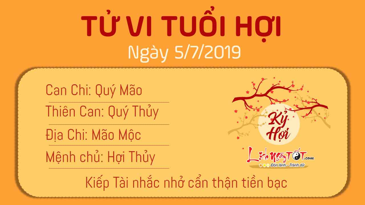 Tam Hợp quý nhân xuất hiện, đường tình duyên của tuổi Hợi nhờ thế mà khởi sắc rực rỡ. Con giáp này gia đạo an yên, vợ chồng tình cảm thăng hoa, chẳng còn mâu thuẫn, tranh cãi như trước nữa. Người độc thân hãy thử 1 lần mạnh mẽ nói rõ lòng mình cho người ấy vì tình yêu không phải là chờ đợi mãi như thế đâu. Kiếp Tài ngáng trở, tiền bạc trong ngày dễ tiêu biến vì những chuyện chẳng đâu vào đâu. Bản mệnh kiếm tiền được nhưng tiêu cũng ác lắm đó nha. Bạn cần phải cân đối chi tiêu của mình lại đi thôi.
