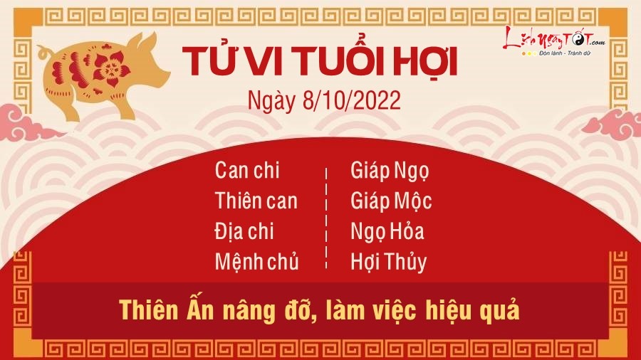 Thiên Ấn soi đường chỉ lối, người tuổi Hợi làm việc hiệu quả và giành được nhiều thành công trong những nhiệm vụ được giao. Bạn cũng có cơ hội thể hiện năng lực trong nhiều lĩnh vực khác nhau, phát hiện thêm khả năng tiềm ẩn. Tuy nhiên đường tình duyên kém vượng do ngũ hành xung khắc tác động. Đôi lứa ngày càng dành ít thời gian cho nhau nên khó tránh xảy ra mâu thuẫn. Đã vậy đối phương không hiểu và thông cảm cho bạn, những mâu thuẫn cũng từ đó mà nảy sinh. Bản mệnh có cái tôi quá lớn nên không thèm hòa giải mà kệ cho mọi chuyện diễn tiến. Thai thần ở hướng Bắc phía trong phòng và cửa phòng thai phụ, phòng giã gạo. Do đó, không nên dịch chuyển vị trí đồ đạc, tiến hành các công việc sửa chữa đục đẽo ở nơi này. Bởi việc làm đó có thể làm động Thai thần, ảnh hưởng đến cả người mẹ và thai nhi.