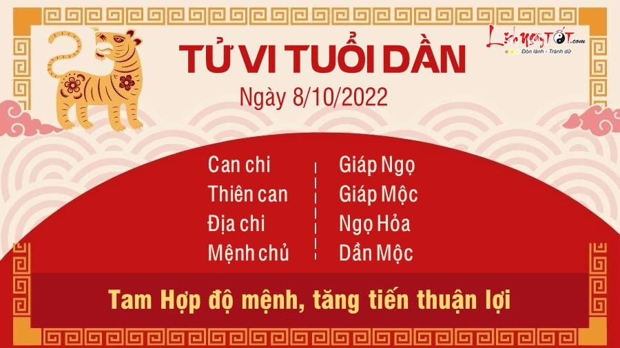 Thực Thần độ mệnh, người tuổi Tị nhờ có tài tinh soi chiếu nên cả nguồn thu nhập chính và thu nhập phụ của bản mệnh đều đang trên đà tăng tiến. Đặc biệt, người làm kinh doanh được ưu ái hơn cả khi con giáp này có nhiều cơ hội kiếm tiền. Tiền bạc rủng rỉnh hơn nên có thể thoải mái chi tiêu, song bạn vẫn cần có kế hoạch chi tiêu hợp lý để tài lộc tiếp tục sinh sôi nhé. Đường công danh sự nghiệp cũng không có gì để phàn nàn. Chỉ cần con giáp này tận dụng tối đa khả năng của mình là có thể nắm bắt được những lợi thế đang sẵn có. Cũng nhờ tinh thần trách nhiệm cao nên cấp trên rất hài lòng về bạn và có thể giao thêm trọng trách mới. Ngày 8/10/2022 vừa là ngày Sát chủ lại vừa là ngày Tam nương sát. Theo quan niệm dân gian, ngày này thuộc Bách kỵ, trăm sự đều kỵ, không nên làm các việc trọng đại, bất kể đối với tuổi nào. Bạn nên lưu ý vấn đề này để sắp xếp công việc phù hợp, hạn chế khởi sự.