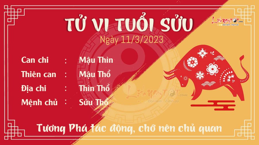Tiếp nối tử vi hàng ngày 10/3/2023, Phá Thái Tuế cảnh báo người tuổi Sửu chớ nên chủ quan bởi trong hôm nay bạn có thể đối mặt với nhiều thử thách, trở ngại. Công việc cũng có điềm báo thị phi khi xuất hiện kẻ tiểu nhân ném đá giấu tay, đòi hỏi bản mệnh phải thận trọng và cảnh giác trong từng lời ăn tiếng nói.