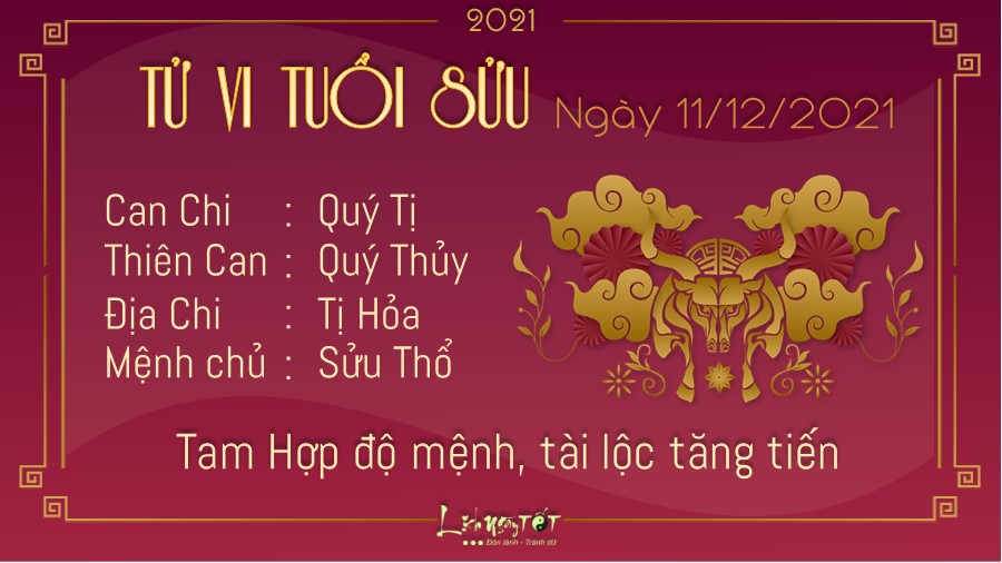 Tuổi Sửu may mắn gặp cục diện Tam Hợp nên được dự báo đường tài lộc tăng tiến không ngừng. Người buôn bán kinh doanh có cát tinh trợ lực nên làm ăn buôn bán phát tài, cơ hội kinh doanh và mở rộng quy mô đang tìm đến bản mệnh.