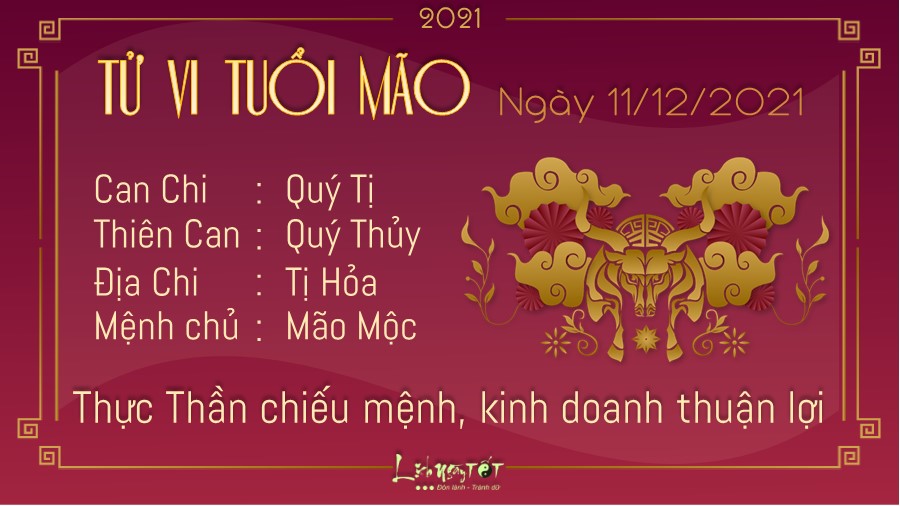 Tuổi Mão có một ngày khá vượng tài nhờ có sự xuất hiện của Thực Thần, nhất là người làm kinh doanh thì càng thêm thuận lợi. Hàng hóa tiêu thụ khá nhanh, bạn cũng yên tâm phần nào. Ngày này Tài thần nằm ở hướng Tây Bắc, đây là hướng có lợi cho các hoạt động cầu tài, khai trương, dễ phát tài phát lộc. Cát khí trong hôm nay cũng sẽ giúp tuổi này sẽ gặt hái được nhiều thành công trên con đường sự nghiệp của mình.