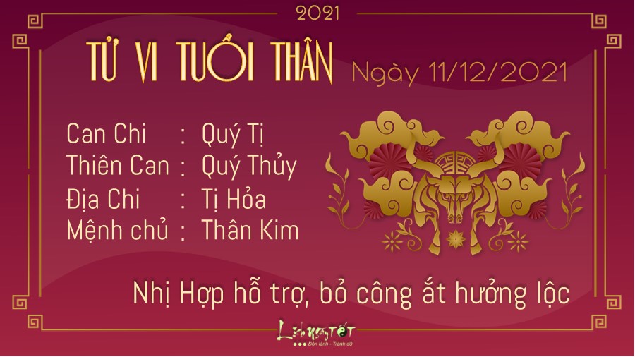 Ngày Tị Thân Nhị Hợp, tuổi Thân gặp nhiều may mắn về tài lộc, bỏ công ra ắt thu được kết quả. Bạn đầu tư lớn thì chưa có thành tựu ngay nhưng đầu tư nhỏ thì lại rất tốt, nhanh chóng có thu nhập khá.
