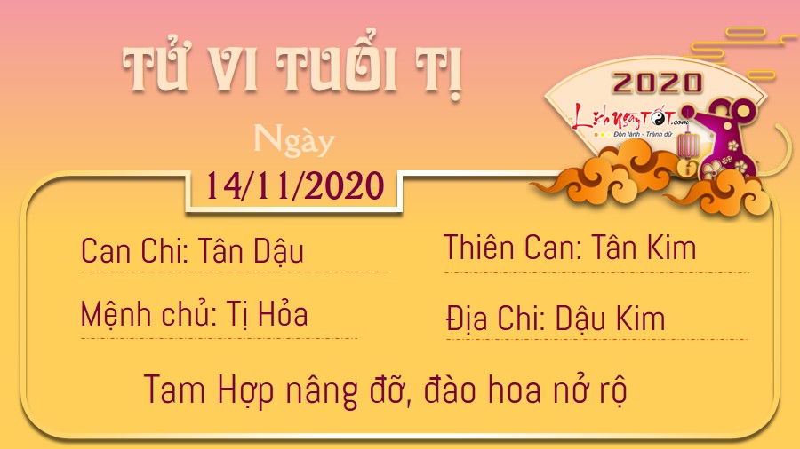 Người tuổi Tị hôm nay được Tam Hợp cục nâng đỡ nên đào hoa nở rộ, đường tình duyên cực kì thuận lợi. Người độc thân có cơ may gặp được người như ý sau bao ngày mong mỏi. Đó có thể là người vốn ở bên cạnh nhưng từ trước tới nay bạn chưa từng chú ý. Cát khí lan tràn, hôm nay những chú Rắn còn sẽ nhận được nhiều tin vui trong công việc. Chính Quan chỉ lối, bạn ngày càng giành được nhiều thành công hơn trong sự nghiệp, cũng được cấp trên và đồng nghiệp tín nhiệm. Đặc biệt, mối quan hệ đồng nghiệp bạn luôn cố gắng giữ ở mức độ hài hòa. Có thể không quá thân thiết nhưng không lạnh nhạt, đủ để mọi người vui vẻ hợp tác và giúp cho công việc được hoàn thành một cách hiệu quả nhất.