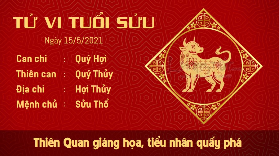 Thiên Quan mang tới những nỗi lo lắng không yên cho người tuổi Sửu trong hôm nay khi tiểu nhân quấy phá, khiến cho công việc trong ngày của con giáp này không được tiến triển tốt đẹp. Ngày này có lẽ sẽ có nhiều chuyện khiến bạn đau đầu, hãy chuẩn bị tâm lý vững vàng nhé. Mệnh chủ cũng cần chú ý cẩn trọng trong lời ăn tiếng nói. Điềm thị phi đang tới rất gần, họa từ miệng mà ra ai cũng biết nhưng mấy ai làm được, con giáp này nên biết điều gì nên nói, điều gì không nên nói, tránh vô tình đắc tội với người khác. Thổ - Thủy xung khắc, bạn chớ nên hành xử vô lý rồi lại bắt nửa kia phải bao dung và chịu đựng mình.