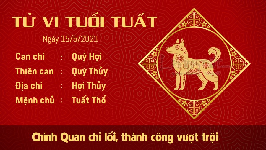 Tuổi Tuất được cát tinh Chính Quan chỉ lối dẫn đường, nhờ thế mà giành được những thành công vượt trội trong công việc. Mọi việc tiến triển một cách thuận lợi đến chính bạn cũng phải bất ngờ. Khó khăn không làm bản mệnh nản lòng, ngược lại càng thôi thúc con giáp này thêm nỗ lực nhiều hơn nữa. Tinh thần cống hiến hết mình và nghiêm túc giúp mệnh chủ không để những trở ngại làm cho mình bỏ cuộc, bạn có tinh thần trách nhiệm cao, đã là những việc được giao cho mình là cố gắng hết sức để hoàn thành, chính vì thế mà cấp trên rất yên tâm khi giao công việc cho người tuổi này. Thổ - Thủy xung khắc khiến chuyện tình cảm của tuổi Tuất không khả quan lắm.