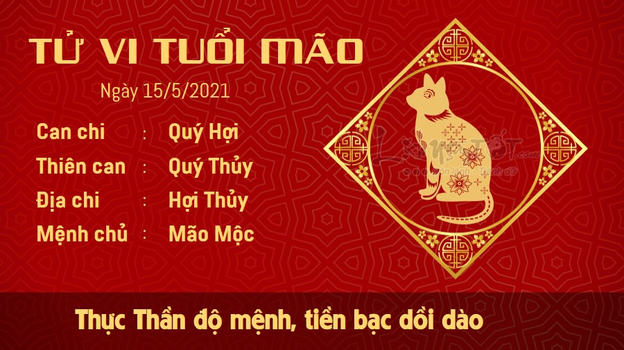Dưới sự tác động của Tam Hợp, người tuổi Mão có những quyết định đúng đắn trong chuyện tình cảm. Nhiều người độc thân nhờ đó mà có những cơ hội mới tốt hơn, mang lại hi vọng mới trong việc tìm kiếm tình yêu. Hôm nay cũng là ngày hòa hợp của các cặp đôi. Thực Thần còn mang lại may mắn cho con giáp này về đường tài lộc, nhất là những người kinh doanh tự do, tha hồ đón tiền bạc dồi dào. Nhờ vậy, bản mệnh không còn quá căng thẳng như trước trong những chuyện liên quan đến tiền bạc nữa, bạn hoàn toàn có thể thả lỏng mình. Thai thần ở hướng Đông Nam phía ngoài cửa phòng thai phụ và phòng giã gạo, thai phụ không nên dịch chuyển ở nơi này tránh làm động Thai thần.