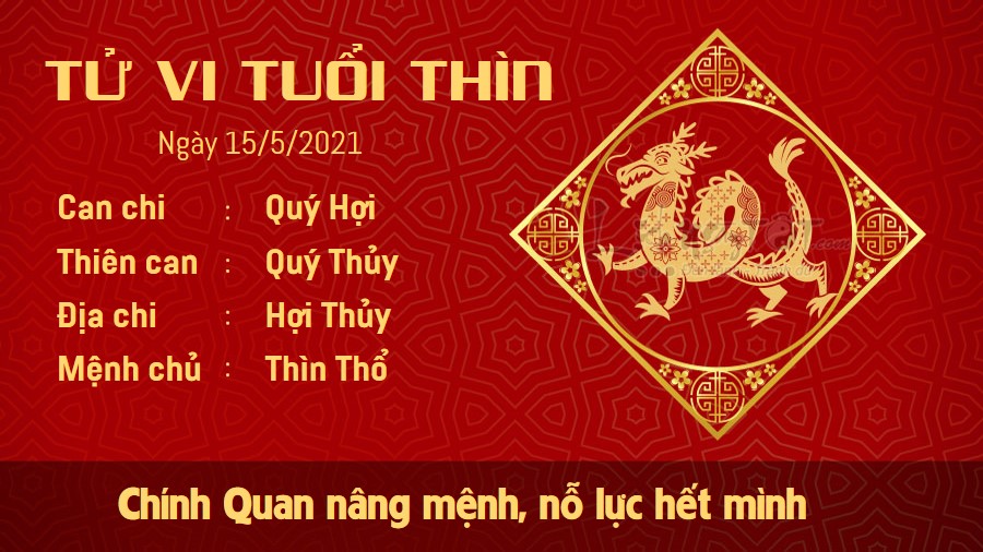 Chính Quan nâng mệnh, đây thời điểm tuổi Thìn đang rất nỗ lực cho sự nghiệp của bản thân. Chẳng điều gì tự nhiên đến, bạn nhận thức rất rõ điều đó nên tự xây dựng quyết tâm và thái độ nghiêm túc để bản thân cố gắng để vươn đến thành công. Bên cạnh đó, đây cũng là lúc bạn nên dành thời gian cho việc chăm sóc sức khỏe và luyện tập thể dục. Đừng vì quá bận rộn mà quên việc chăm sóc bản thân. Ngũ hành xung khắc không tốt cho chuyện tình cảm của những chú Rồng. Giữa bạn và người ấy có kha khá vấn đề tiềm ẩn từ lâu nhưng cả hai đều chọn cách lơ đi, khiến chúng như những ngòi nổ âm thầm đe dọa tình yêu của hai bạn.