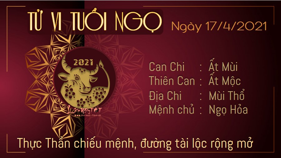 Dưới tác động của cát tinh Thực Thần, đường tài lộc của người tuổi Ngọ đang vô cùng rộng mở. Thu nhập của bạn trong ngày hôm nay chủ yếu đến từ việc kinh doanh buôn bán. Chuyện làm ăn hanh thông phát đạt, tiền bạc ào ào đổ về tay nhiều không kể xiết, chẳng lo lắng nhiều về vấn đề tài chính. Lúc này, bạn nên mạnh dạn tiến hành những kế hoạch đã ấp ủ từ lâu để mượn phần cát khí do Thực Thần mang lại, tăng thêm khả năng thành công, mang thêm tài lộc về nhà. Hôm nay có Thần Tài che chở nên mọi chuyện cũng sẽ dễ dàng và suôn sẻ hơn. Tình cảm gia đình của bản mệnh hài hòa, gia đạo an yên, mâu thuẫn giữa các thành viên trong nhà nhanh chóng được hóa giải nhờ ngũ hành tương sinh.