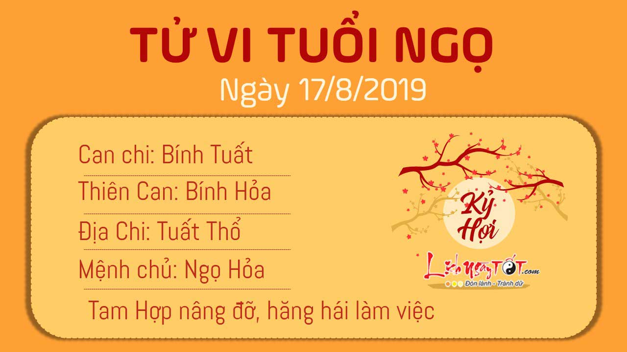 Tam Hợp phù trợ, người tuổi Ngọ rất nhiệt tình và hăng hái trong công việc. Bản mệnh thường bắt tay vào công việc được giao ngay mà không chần chừ, do dự chút nào. Nhưng cũng chính điều này lại khiến bạn trở nên nóng vội. Trước khi đưa ra bất cứ quyết định gì, đặc biệt là những quyết định quan trọng, bạn cần phải suy tính một cách kỹ càng, không nên hăng hái lúc đầu rồi về sau lại thành ra chán nản, muốn bỏ dở, buông xuôi, khiến người khác phải khắc phục hậu quả. Hỏa sinh Thổ, mối quan hệ giữa con giáp này và gia đình vô cùng hòa hợp.
