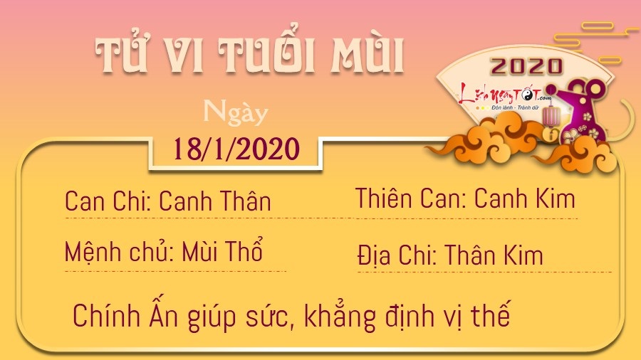 Chính Ấn nâng đỡ, người tuổi Mùi khẳng định được giá trị của bản thân mình dựa vào chính công sức của mình. Nếu như trước đây, bạn chỉ là một người lặng lẽ thì đến nay, mọi người sẽ phải đánh giá bạn bằng con mắt khác xưa. Tuy nhiên, với người làm ăn kinh doanh thì hôm nay lại không phải là ngày có nhiều biến động. Bản mệnh nên nắm bắt cơ hội một cách nhanh chóng hơn, không nên chần chừ, do dự quá lâu, để người khác chớp mất thời cơ. Thổ sinh Kim, bản mệnh và người bạn đời luôn thấu hiểu lẫn nhau mà không cần đôi bên phải nói rõ thành lời. Có thể được như vậy là nhờ trước nay hai người luôn tâm sự và trao đổi ý kiến với nhau trong mọi chuyện.