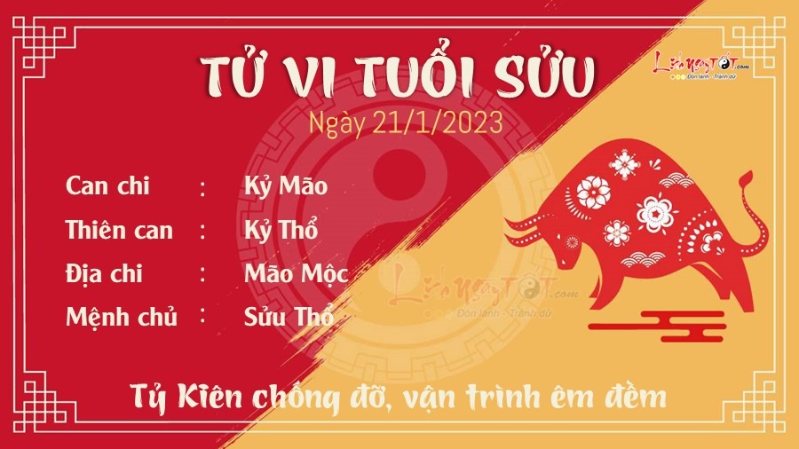Người tuổi Sửu gặp Tỷ Kiên chiếu mệnh, dự báo ngày 30 Tết của bản mệnh diễn ra khá êm đềm. Hầu hết các công việc đều được bản mệnh sắp xếp đâu vào đấy hoặc để dành ra Giêng thực hiện nốt, thời gian này bạn chỉ muốn tập trung vào kế hoạch đón Tết cùng gia đình. Với những người làm ăn kinh doanh thì đây là thời điểm con giáp này có thể phải vội vã hơn nhưng đổi lại vận tài lộc rất sáng giúp tinh thần cũng khá tốt, hào hứng và tràn đầy niềm hi vọng. Ngày cuối cùng của năm Nhâm Dần vẫn thu về lợi nhuận, bạn quả thực đang đi rất đúng hướng. Tuy nhiên, ngày này có ngũ hành xung khắc nhắc nhở con giáp này nên thận trọng trong lời ăn tiếng nói, tránh để cho người khác hiểu lầm mà ảnh hưởng tới không khí gia đình. Mối quan hệ của những người độc thân sẽ cần được xem xét thận trọng và đừng quá vội vàng quyết định khi chưa hiểu rõ về một ai đó.