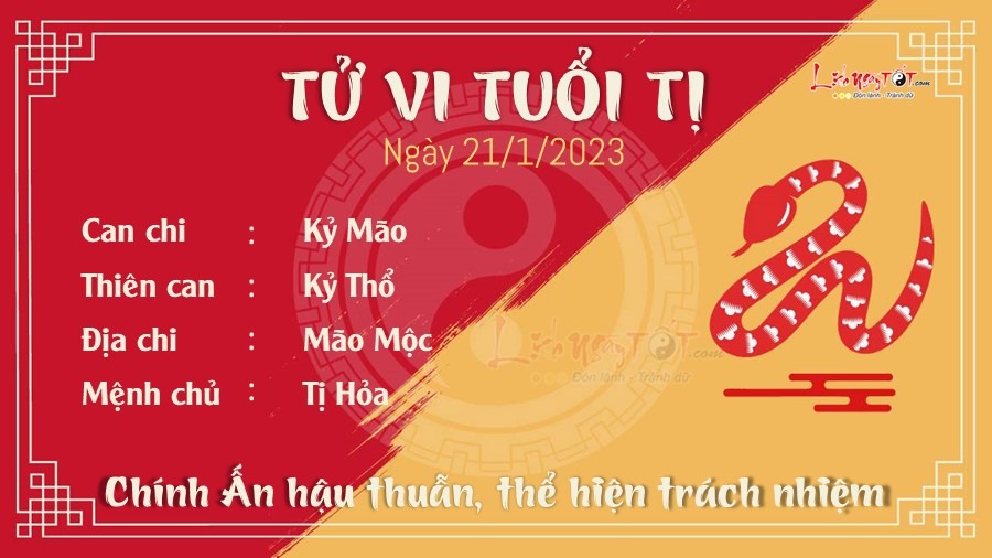 Chính Ấn xuất hiện, người tuổi Tị vẫn thể hiện tinh thần trách nhiệm và hết mình với công việc. Vui đón Tết nhưng bạn cũng không quên sắp xếp thời gian hợp lý để quan tâm tới công việc, đảm bảo mọi thứ vẫn đang hoạt động ổn định. Điều này khiến bản mệnh được cấp trên đánh giá cao và ghi nhận đóng góp của bạn. Với nỗ lực đã bỏ ra, những chú Rắn còn có thể yên tâm khi tài chính của mình đang rất vững mạnh. Cả người làm công ăn lương lẫn người kinh doanh đều có tài lộc dồi dào, tạm buông nỗi lo tiền bạc. Đây là thông tin vô cùng đáng mừng, báo hiệu Tết này bạn không còn gánh nặng tài chính nữa. Ngũ hành Mộc sinh Hỏa cũng kéo vận trình tình cảm đi lên nhờ bản mệnh biết dành thời gian cho đối phương, vun vén cho hạnh phúc bé nhỏ của mình. Không khí Tết lan tràn giúp gắn kết mọi người, các thành viên xích lại gần nhau hơn, những khúc mắc trước đó cũng được hóa giải nhanh chóng.