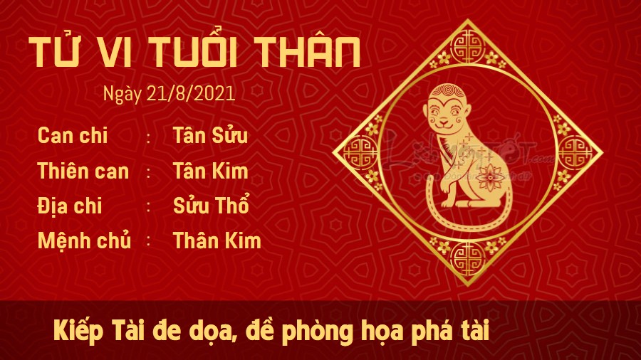 Kiếp Tài cảnh báo về họa phá tài đang đến rất gần mà tuổi Thân không thể coi thường. Bản mệnh có thể sẽ tiêu xài tiền bạc vào những chuyện vô bổ, không thực tế, khiến tài khoản hao hụt đi con số lớn, đến lúc nhìn lại mới hối tiếc không thôi. Với người theo nghiệp kinh doanh, mệnh chủ nên đề phòng trước những lời đề nghị ngọt ngào của người bên cạnh bởi có thể bạn sẽ bị lừa gạt tiền bạc đó. Cần phải kiểm soát những nhu cầu của mình, chớ tham cái lợi trước mắt. Bù lại, Thổ sinh Kim nên bạn sẽ gặp nhiều niềm vui và sự bất ngờ trong chuyện tình cảm. Đây là lúc thích hợp để hai bạn tiến đến một trang mới trong chuyện tình cảm lứa đôi.