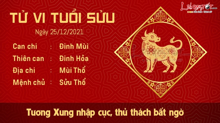 Cục diện Tương Xung Thái Tuế, công việc của tuổi Sửu trong ngày hôm nay diễn ra không được khả quan như mong đợi. Các thử thách đặt ra bất ngờ đòi hỏi con giáp này phải giữ được bình tĩnh, sự khôn ngoan và kiên nhẫn thì mới có thể tháo gỡ vấn đề. Chỉ tiếc rằng bản mệnh đang để sự nóng vội làm chủ lý trí, suy nghĩ chưa tới nên khó tránh khỏi những va vấp trong công việc. Chính vì thế mà càng về cuối ngày làm việc, tình hình càng diễn tiến theo chiều hướng xấu hơn. Bạn khó tránh phải tăng ca, làm thêm giờ để giải quyết công việc. Thổ khí vượng càng khiến suy nghĩ của những chú Trâu rơi vào bế tắc, không đủ tỉnh táo để tháo gỡ những việc đang gặp phải. Nhưng dù có đối mặt với chuyện gì, khi về đến nhà bạn cũng nên gác lại những muộn phiền đó thay vì mang theo cả giông bão về tổ ấm của mình rồi trút lên đầu những người yêu thương.
