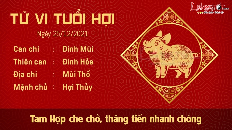 Tam Hợp che chở, đường công danh sự nghiệp của tuổi Hợi sẽ có những bước thăng tiến nhanh chóng. Bản mệnh là người có năng lực nên được cấp trên nhìn nhận và đánh giá cao, ngoài ra cách đối nhân xử thế của bạn cũng rất được lòng mọi người xung quanh. Lời khuyên cho bạn là nên biết tận dụng cơ hội này để cố gắng phát huy tối đa khả năng của mình nhằm hướng tới một tương lai tươi sáng hơn. Điều quan trọng là bạn vẫn phải học cách sắp xếp thời gian và công việc thật hợp lý, tránh để chuyện cá nhân làm ảnh hưởng để quyết tâm thực hiện mục tiêu của mình. Trên phương diện tình cảm, trong khoảng thời gian này bản mệnh và nửa kia rất dễ nảy sinh mâu thuẫn bởi những bất đồng quan điểm vốn đã có từ trước đó, đối phương không hiểu rằng bản thân bạn cũng đã hy sinh rất nhiều cho mối quan hệ này. Hãy dành thời gian trò chuyện, tâm sự cùng nhau để cả hai có thể hiểu nhau hơn.