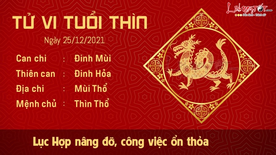 Lục Hợp xuất hiện trong tử vi hôm nay của người tuổi Thìn giúp công việc của bạn trong ngày hôm nay diễn ra ổn thoả. Tiến độ công việc dù không quá nhanh nhưng nhờ biểu hiện xuất sắc nên bạn vẫn đang thăng tiến rất ổn định. Bản mệnh hoàn toàn có thể gặt hái được thành tựu như mong muốn nếu biết vượt qua cái tôi của chính mình. Bạn cũng nên hài lòng với hiện tại của mình, trong công việc bạn cứ tiến hành một cách bình thường là tốt, việc như thế nào cứ làm như thế ấy, không nên tính chuyện lớn lao xa vời. Mọi việc bạn hãy thuận theo tự nhiên sẽ yên lành tốt đẹp hơn. Ngày này vận trình tình cảm cũng ở mức hài hòa. Tình cảm gia đình luôn giữ được sự ấm êm, thuận hoà nhờ sự vun vén, gìn giữ mối quan hệ của người trong cuộc. Người độc thân mau chóng tìm được một nửa của mình nhờ đào hoa vượng nâng đỡ.