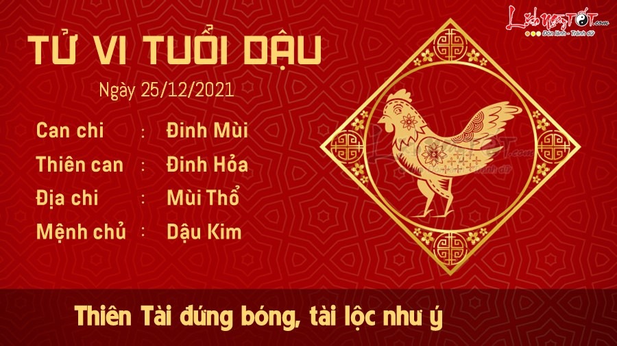 Nhờ có Thiên Tài cát tinh trợ lực nên điều thuận lợi và tốt đẹp nhất của người tuổi Dậu trong ngày hôm nay chính là vận trình tài lộc như ý. Nếu là người đang kinh doanh, bạn sẽ sớm đạt được thành công như ý nguyện nhờ các đơn hàng tới tấp đổ về trong những ngày cuối năm này. Bạn cũng sẽ gặt hái được nhiều thành công trong ngày này. Nhưng đừng vì thế mà lười nhác, cuộc sống an nhàn thoải mái sẽ khiến bạn thiếu động lực. Nếu mỗi ngày bạn không cố gắng phấn đấu tiến về phía trước, hẳn sẽ có ngày bị tụt lại sâu ở phía sau so với đối thủ. Vận đào hoa của bạn khá rực rỡ nhờ Thổ sinh Kim. Tuy nhiên, cũng chính vì quá đào hoa mà dù được nhiều người để ý, bạn lại khó lòng chọn được cho mình đối tượng phù hợp. Bạn nên nghiêm túc hơn, tránh trêu đùa tình cảm của người khác kẻo cuối cùng người chịu tổn thương sẽ là chính bạn.