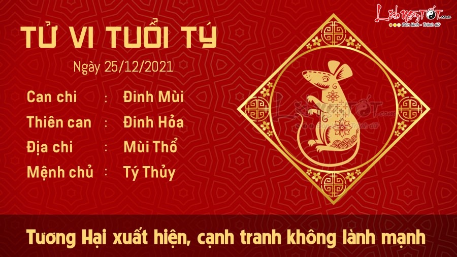 Mùi Tý Tương Hại cảnh báo người tuổi Tý cẩn thận điềm báo cạnh tranh không lành mạnh từ đối thủ hay tiểu nhân trong hôm nay. Trong buôn bán hay công việc, bạn đều nên cẩn trọng để lường trước những thủ đoạn của đối thủ. Ngày này công sức của bạn có thể không được ghi nhận xứng đáng. Con giáp này có năng lực, làm nhiều nhưng lại không được đánh giá đúng nên có phần suy nghĩ theo chiều hướng tiêu cực. Bản mệnh nên coi những điều mình làm là để bản thân phát triển hơn chứ không phải theo ý muốn của ai, như vậy sẽ thấy nhẹ nhõm hơn rất nhiều. Thủy – Thổ xung khắc còn khiến tình cảm nhiều rối ren. Bạn dường như đang quá an toàn, bạn không muốn chấp nhận rủi ro trong tình yêu nên không chịu mở lòng với những mối quan hệ mới.