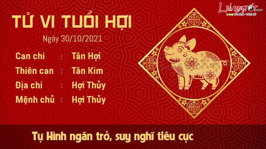 Hợi – Hợi Tự Hình có thể là nguyên nhân khiến người tuổi Hợi có nhiều suy nghĩ tiêu cực. Trạng thái tinh thần của bạn bị ảnh hưởng từ nhiều vấn đề xung quanh nên khó giữ được sự sáng suốt và tỉnh táo như thường ngày. Hôm nay cũng không phải là một ngày sáng suốt để theo đuổi các kế hoạch tài chính. Nguy cơ phá tài luôn hiện hữu, bạn cũng không thể lường hết được những nguy cơ mình có thể gặp phải nếu cứ cố chấp mạo hiểm. Lời khuyên dành cho con giáp này là hãy chậm lại bước chân, đợi một cơ hội thích hợp hơn nhé. Ngày Thủy khí vượng còn tác động đến sức khỏe của tuổi này. Nếu thường xuyên có cảm giác mỏi mệt và uể oải, có lẽ bạn cần thay đổi thói quen sinh hoạt để nạp đủ năng lượng cho cơ thể. Khi sức khỏe đảm bảo, bản mệnh mới có thể theo đuổi lý tưởng của mình.