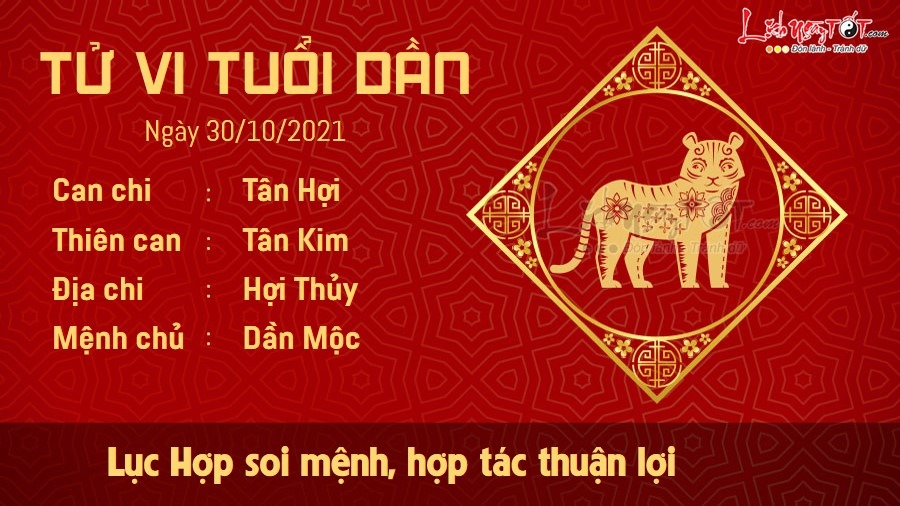 Lục Hợp hỗ trợ người tuổi Dần rất nhiều trong việc hợp tác, ký kết làm ăn. Hầu hết các kế hoạch đều nằm trong tầm kiểm soát của con giáp này, không khó để bạn thu về lợi nhuận như mong muốn, cũng không phải lo lắng về tiền bạc nữa. Công việc trong ngày hôm nay cũng khá bình ổn. Bản mệnh phát huy năng lực bản thân mạnh mẽ, được cấp trên ưu ái nâng đỡ trao cho những trọng trách mới. Tuy có chút áp lực nhưng đây chính là bước tiến tích cực trong sự nghiệp của bản mệnh. Thủy sinh Mộc giúp đường tình duyên nở rộ, các mối quan hệ trong ngày thăng cấp nhanh chóng. Bạn may mắn được cả gia đình và bạn bè ủng hộ và tán thành nên không có gì phải lo nghĩ thêm nữa. Nếu còn độc thân, bạn nên tham gia các hoạt động xã giao để mở rộng mối quan hệ.
