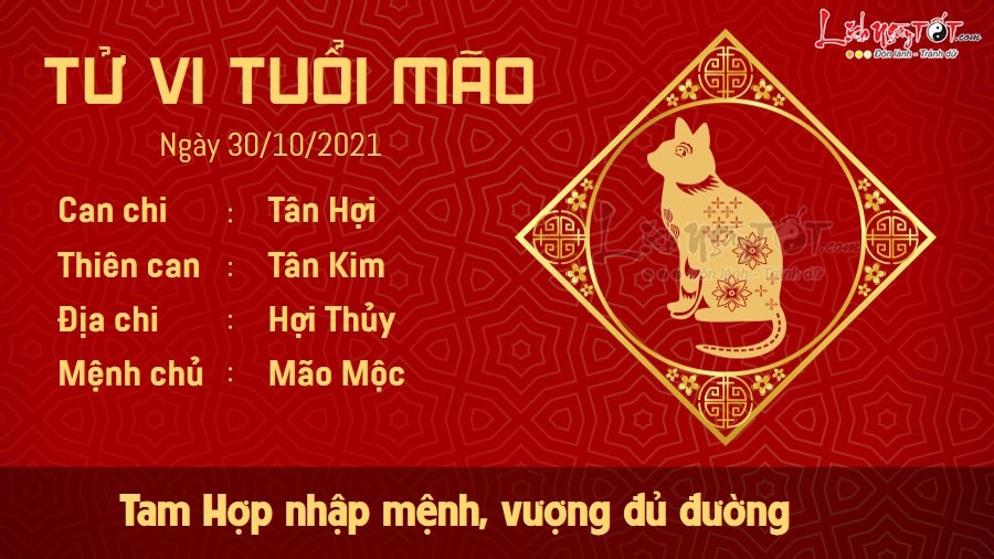 Với sự xuất hiện của Tam Hợp quý nhân, hôm nay có thể nói là một ngày vượng đủ đường với người tuổi Mão. Trước hết là ở phương diện tình cảm, bạn có thể giải quyết được hết các mâu thuẫn trong gia đình, tìm lại tiếng nói chung giữa các thành viên. Không khí gia đình êm ấm cũng tạo động lực cho mọi người cố gắng. Thiên Tài lại hỗ trợ Mão trên công cuộc kiếm tiền làm giàu của mình. Bên cạnh các kế hoạch đang tiến hành, bạn cũng nên tìm hiểu thêm về các lĩnh vực đầu tư mới và sẵn sàng cho những quyết định sáng suốt về tiền bạc trong tương lai. Công việc trong ngày cũng có nhiều tiến triển tích cực. Hợp tác suôn sẻ với đồng nghiệp giúp bạn nhận được những sự hỗ trợ kịp thời để đẩy nhanh tiến độ. Bạn có thể ghi điểm trong mắt cấp trên nhờ sự hòa đồng và hăng hái của mình.