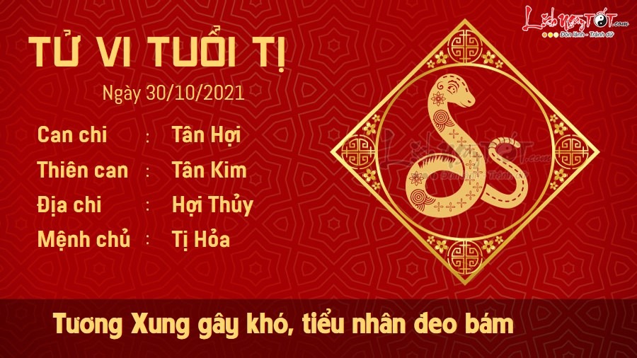 Hợi Tị Tương Xung, người tuổi Tị gặp nhiều bất lợi do tiểu nhân vẫn không ngừng đeo bám. Dù bạn đã cố gắng khắc phục rất nhiều nhưng tình hình vẫn không mấy khả quan. Lúc này bạn càng nên chỉn chu trong công việc hàng ngày, lập kế hoạch làm việc cụ thể để tránh mắc phải sai lầm lần nữa. Thủy – Hỏa bất dung, nỗi buồn tình cảm cũng ảnh hưởng không nhỏ đến trạng thái tinh thần của những chú Rắn. Tình cảm trao đi mà không được đáp lại, yêu đơn phương khiến cho con giáp này héo mòn vì đau khổ. Đừng cố đâm đầu một cách vô vọng, hãy yêu thương bản thân mình nhiều hơn. Thai thần ở hướng Đông Bắc phía ngoài phòng bếp, bếp lò và giường ngủ, không nên dịch chuyển ở nơi này tránh làm động Thai thần, ảnh hưởng đến cả người mẹ và thai nhi.