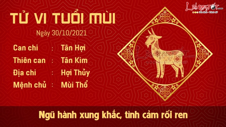 Ngày Tân Hợi, công việc của tuổi Mùi tiến triển rất thuận lợi. Các mối quan hệ tình cảm bạn bè, đồng nghiệp thuận hòa, đúng như những gì bản mệnh mong muốn nên tinh thần cũng rất hăng hái và vui tươi. Bản mệnh trở nên vui vẻ, cởi mở hơn với mọi người và là lý do giúp con giáp này kết nối tốt hơn, nhận được sự giúp đỡ đúng lúc cần. Bạn cũng nhận được nhiều lợi ích từ những suy nghĩ tích cực là giúp cuộc sống của mình trôi chảy hơn. Tuy nhiên, Thủy – Thổ xung khắc lại khiến bạn khá đau đầu khi chưa thể tìm được bí quyết để duy trì mối quan hệ hạnh phúc và bền vững. Dù thời gian bạn đã có nỗ lực và cố gắng nhất định, nhưng kết quả vẫn chưa đi đến đâu khi mọi thứ đều chỉ xuất phát từ một phía.