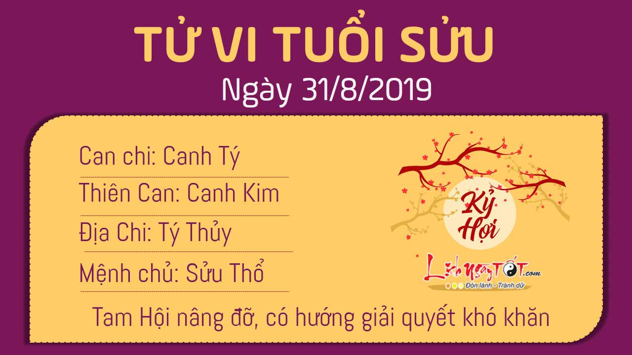 Nhờ có Tam Hội phù trợ mà công việc của người tuổi Sửu tiến triển cực kỳ suôn sẻ. Nếu có bất kì vướng mắc gì, bản mệnh có thể tìm được hướng giải quyết dễ dàng nếu nhờ sự giúp đỡ, chỉ bảo của cấp trên và đồng nghiệp xung quanh mình. Quan hệ xã giao hài hòa giúp mệnh chủ gặp được đối tượng đồng chí hướng với mình. Nếu quyết định hợp tác làm ăn với đối tượng ấy, bạn có thể gặt hái được những thành tích đáng ngưỡng mộ trong tương lai. Tuy nhiên, Thổ khắc Thủy nhắc nhở bản mệnh cần quan tâm và trò chuyện với nửa kia của mình nhiều hơn.