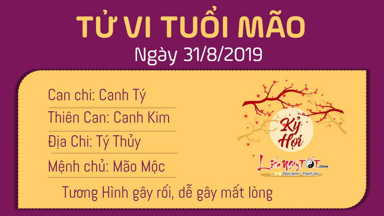 Do phạm cục diện Tương Hình nên người tuổi Mão rất dễ gây mất lòng người khác. Dù bản mệnh là người có tầm nhìn xa trông rộng đấy nhưng bạn lại quá ngạo mạn nên chẳng biết kiêng dè bất cứ ai. Khi muốn nhận xét về người khác, bản mệnh nên chú ý lựa chọn những từ ngữ uyển chuyển, không gây tổn thương cho người nghe. Cho dù bạn góp ý một cách đầy thiện ý đi chăng nữa, nếu truyền đạt không tốt thì cũng sẽ gây phản tác dụng. Tuy nhiên, Chính Tài lại khuyên bạn nên đưa ra những quyết định đầu tư trong ngày hôm nay.