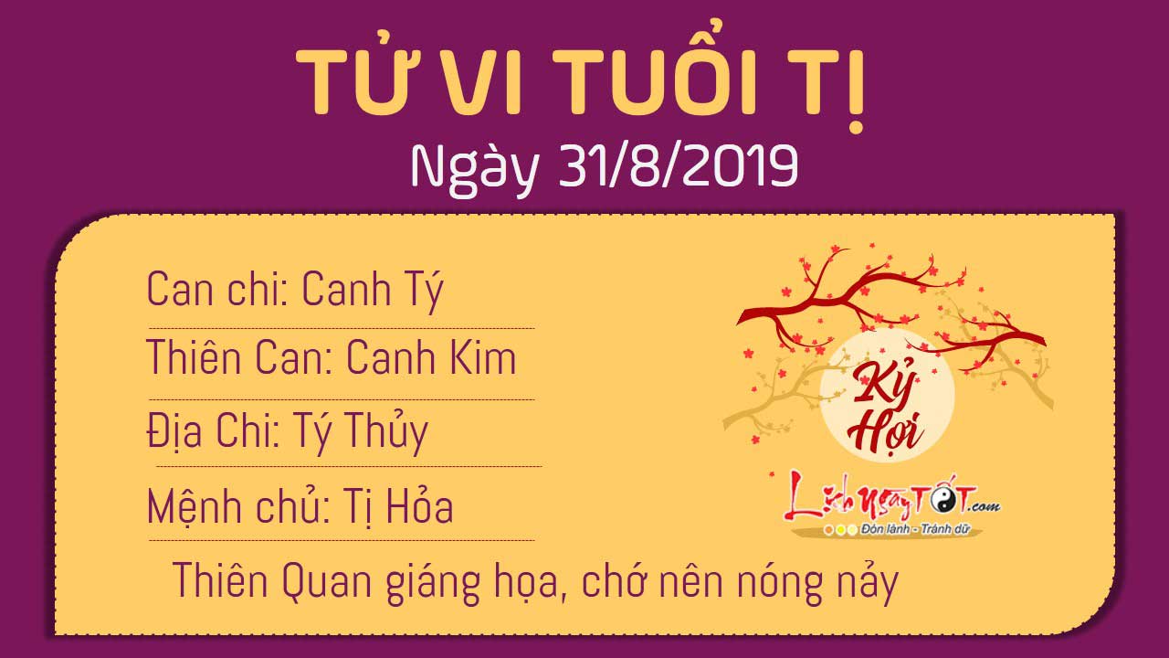 Thiên Quan giáng họa, tuổi Tị cần đối diện với nhiều khó khăn trong công việc vào ngày hôm nay. Hãy chú ý giữ bình tĩnh, nếu không thì mâu thuẫn, xích mích có thể xảy ra bất cứ lúc nào. Đặc biệt, bản mệnh cần tránh đối đầu với cấp trên, cho dù có ý kiến bất đồng thì bạn cũng nên nêu quan điểm một cách nhẹ nhàng chứ không nên nghiêm trọng hóa vấn đề, khiến đôi bên đều trở nên nóng nảy. Thủy khắc Hỏa, bản mệnh nên quan tâm đến gia đình nhiều hơn. Tiền mất rồi có thể kiếm lại, còn một khi tình cảm đã phai nhạt thì bạn khó có thể bù đắp được nữa.