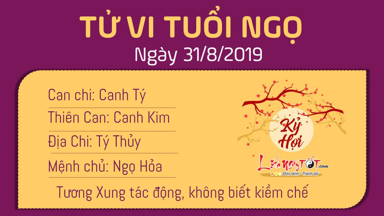 Người tuổi Ngọ dễ nổi nóng do phải chịu ảnh hưởng của cục diện Tý Ngọ tương xung. Bạn không biết cách tiết chế cảm xúc nên dễ nói hoặc có hành động không hay, dễ gây ác cảm với mọi người xung quanh. Bản mệnh có thể nhận ra rằng có nhiều đối tượng khác giới để ý và quan tâm đến mình. Thế nhưng trên thực tế, hôm nay không phải một ngày thích hợp để phát triển tình cảm, vì thế hãy giữ khoảng cách cần thiết với mọi người. Hôm nay trực Định là ngày tránh các hoạt động tranh chấp, kiện tụng, vì vậy, bản mệnh cần giữ hòa khí với mọi người.