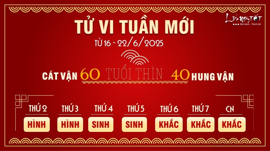 16/06/2025 22:56Tử vi tuần mới của 12 con giáp (16 - 22/6/2025): Sửu 'thất thoát', Ngọ đối mặt áp lực