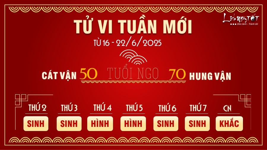 Tuổi Ngọ sẽ chịu ảnh hưởng của hung tinh Thái Tuế, đối mặt với nhiều áp lực và thử thách bất ngờ. Tuy nhiên, giữa tuần có Thiên Ấn nhập mệnh, đây là cơ hội quý giá để giải quyết những việc khó khăn.