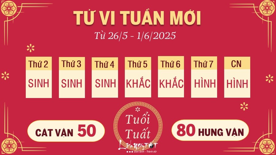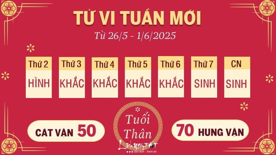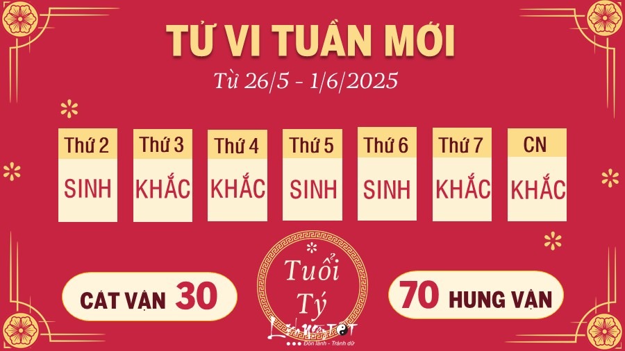 26/05/2025 18:32Tử vi tuần mới của 12 con giáp (26/5 - 1/6/2025): Thìn bận rộn, Dậu bình ổn