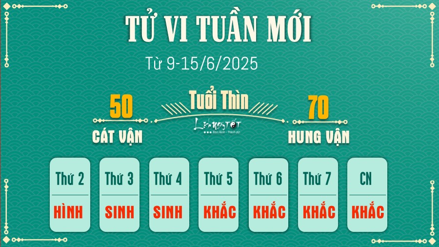 09/06/2025 21:00Tử vi tuần mới của 12 con giáp (9-15/6/2025): Hợi phát tài, Sửu cần giữ bình tĩnh