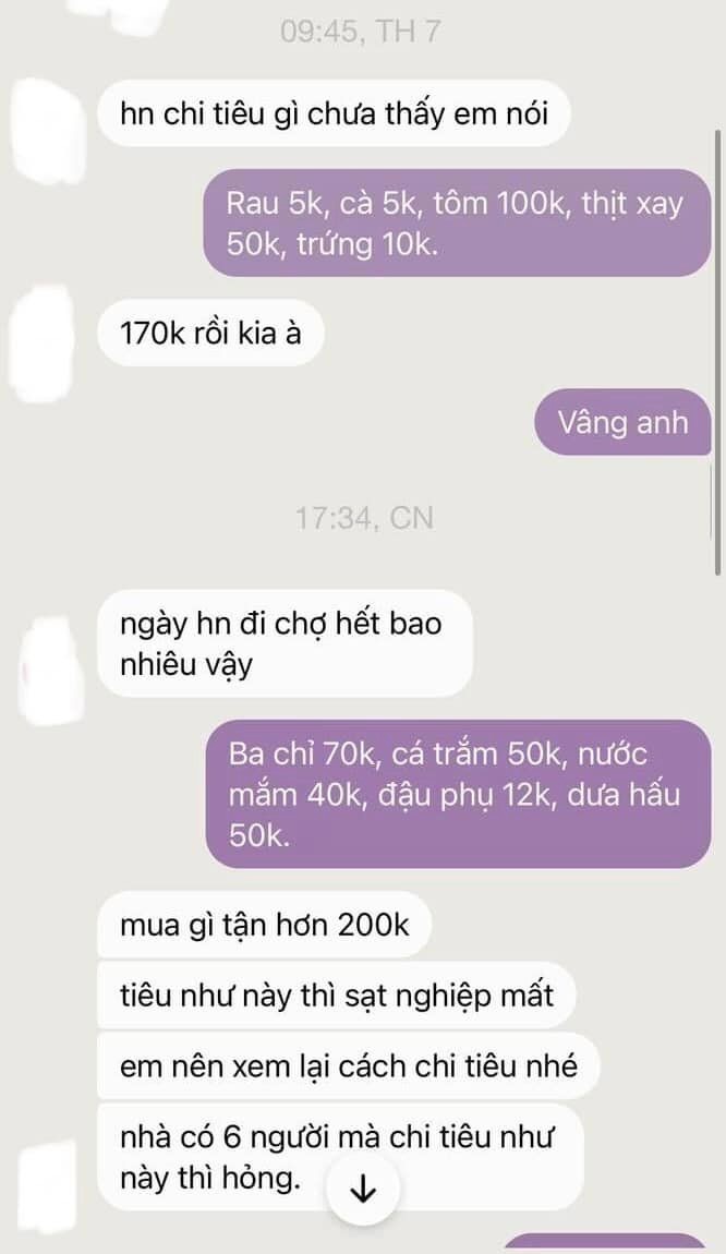 Trên đây là ảnh chụp màn hình cuộc đối thoại hàng ngày của cả 2 vợ chồng. Ngày nào anh chồng cũng hạch hỏi vợ đi chợ mua những gì. Có lẽ đã quá quen thuộc và chán nản với tính cách của chồng nên cô vợ cũng đáp một cách lạnh lùng, không dư thừa một câu.