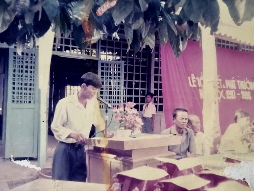 Ba lên bục phát biểu cuối năm với đôi dép mủ mòn hết đế, chiếc nọ xọ chiếc kia. 30 năm quen với bảng đen phấn trắng, giờ tiếp xúc với công nghệ hiện đại, ba có chút lúng túng không quen..."