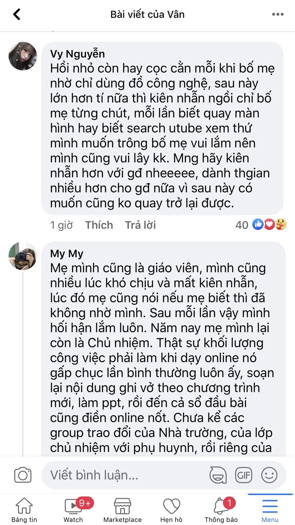 Từ chuyện bố là thầy giáo đang dạy học online trong mùa dịch này, Tiểu Vân đã chia sẻ một câu chuyện khiến nhiều người rưng rưng.
