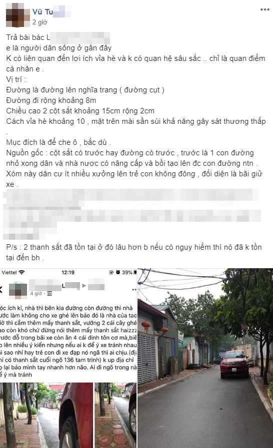 Bài viết còn đang bị tranh luận thì một thanh niên sống trong khu vực này đã đăng đàn lên tiếng, tỏ ý không đồng tình. Theo nam thanh niên, đường trong ngõ này khá rộng, trẻ con không nhiều. Bên cạnh đó, mặt trên của các cọc sắt đã được mài sần sùi, khả năng gây sát thương thấp. Cọc chỉ có mục đích là che ô, căng dù.